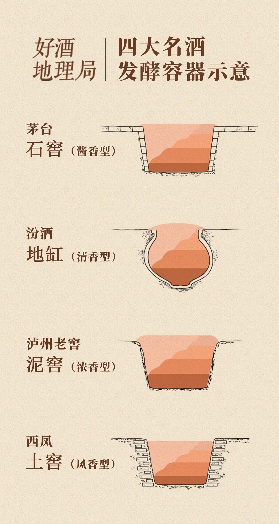 而對于清香、醬香等香型并非如此。清香型白酒以地缸發酵,醬香型白酒的石窖建成即可投產,酒質與窖池新老均無關聯。