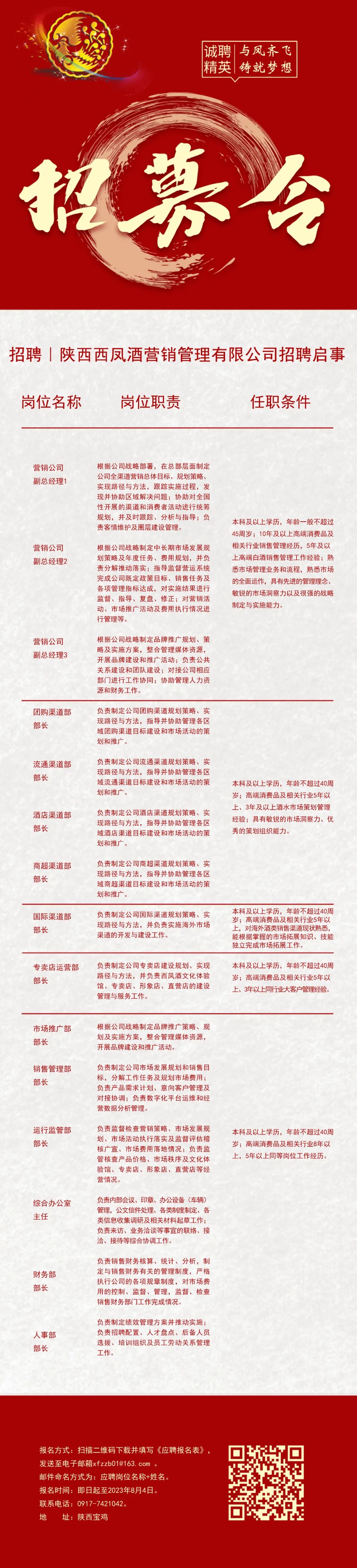 招聘|陜西西鳳酒營銷管理有限公司招聘啟事